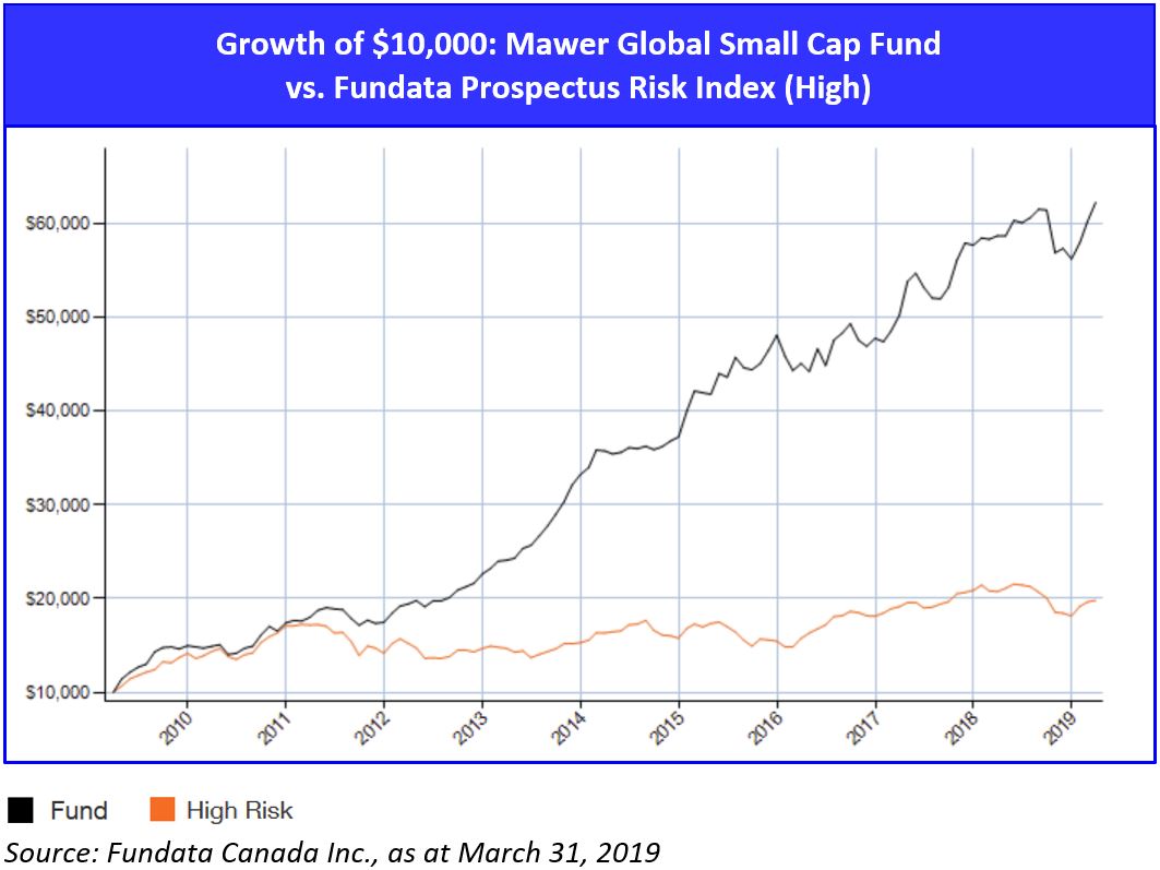 The Mawer Global Small Cap Fund has now been around for over 11 years (it debuted in October 2007), having consistently delivered excellent returns on both and absolute and risk-adjusted basis. Its 10-year average annual compounded rate of return to March 31 was 20.1%, double the 9.9% Global Small/Mid Cap category average and markedly over the 13% posted by MSCI World Small Cap Index. Perhaps more impressive is the consistency of performance.