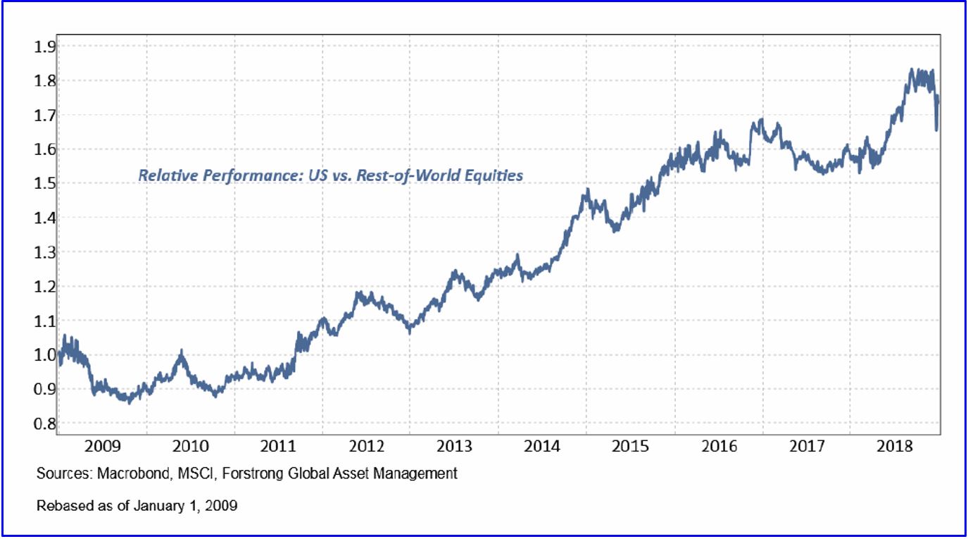 The undoing of that near perfect American world began in late 2018, when U.S. stock market leadership turned down. What should investors make of this? In recent commentaries, we have argued that U.S. equities and the U.S. dollar are set to underperform. Why? Several key drivers of U.S. equity outperformance are going into reverse: