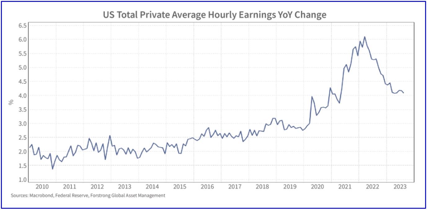 All of this is a key reason that recession forecasts (which have now been reduced to a smoldering husk) have been off the mark. Investors have placed too much emphasis on higher interest rates and not enough on rising corporate revenues and higher household incomes. The key difference between this cycle and all other cycles over the last four decades is higher wage growth. After stagnating for years, workers wages are now on a tear. Yes, prices are rising but so are hourly earnings, growing at a 4%-5% clip. With labour shortages persisting, wage strength will continue.