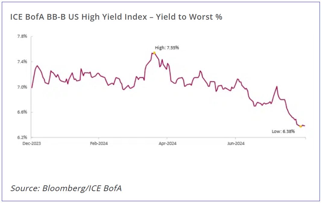 A sharp decline in risk assets at the start of August was met with a strong risk-taking impulse that saw the high yield market put up one of its best months of 2024. Market returns were driven by a combination of positive carry, narrowing spreads, and lower base government bond yields. The market did not make new lows for the year in spreads, and we believe that a traditionally very quiet second half of the month contributed significantly to the rally.