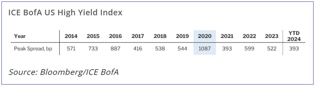 It is noticeable that 2024 so far is tied with 2021 as the lowest peak spread value since the Global Financial Crisis. We believe the market’s apathy for potential risk repricing bears a lot of resemblance to 2021. There clearly are differences between the two market environments. We thought that the easier trade three years ago was to be short duration rather than risk assets, while now the opposite is true. Even with the strong recovery into the end of August, the increased volatility in recent weeks argues to us that market drivers are shifting, which should eventually lead to better opportunities.