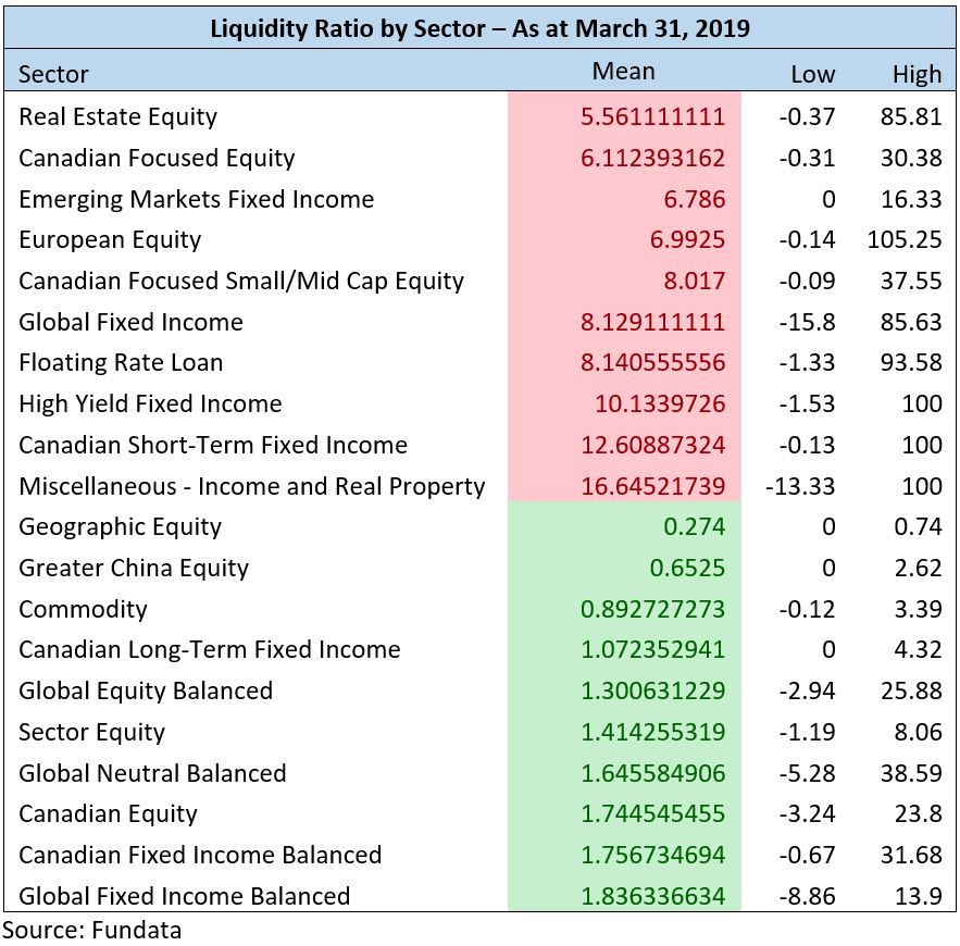 Looking at our previous Q4 2018 Liquidity Analysis Report published in February, we find that Financial Services Equity was significantly overweight at -1.36%. The iShares S&P/TSX Capped Financials Index ETF (TSX: XFN) returned 10.20% in the first quarter of 2019. The analysis demonstrates that fund managers were able to forecast this sector efficiently.