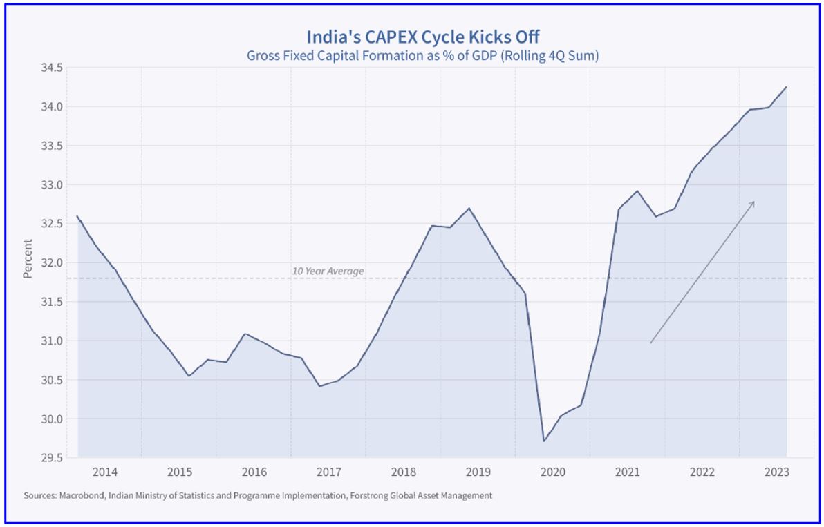 The above developments for India’s long-term growth outlook should not be underestimated. Increasing infrastructure development will ease India’s transportation bottlenecks, and improving capital stock through investment spending is critical in lifting the country’s productivity and corporate profitability.