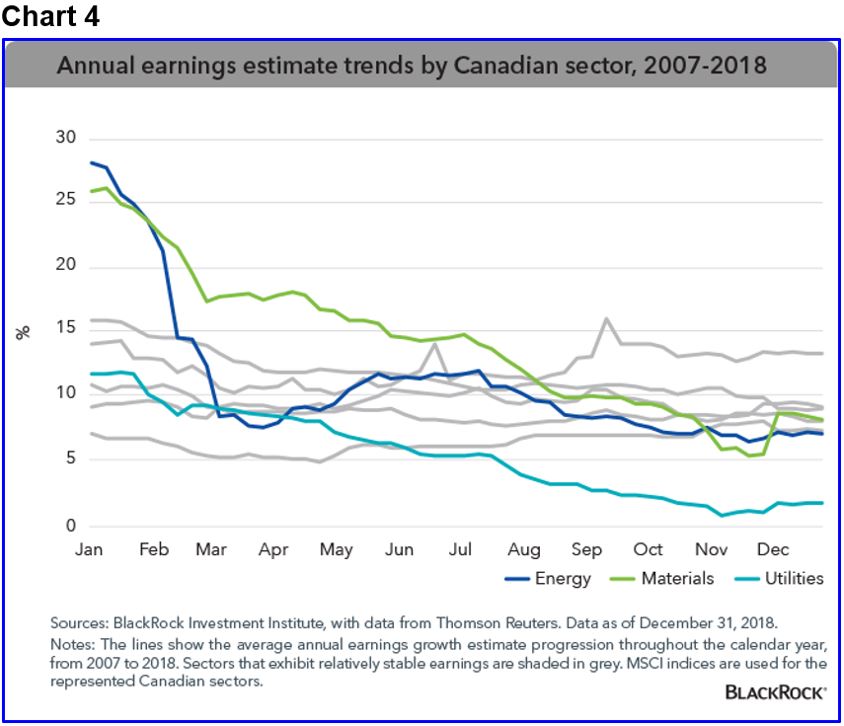 As a result, it should come as no surprise that the bulk of the earnings downgrades in Canada have historically come from the energy and materials sectors (see Chart 4).