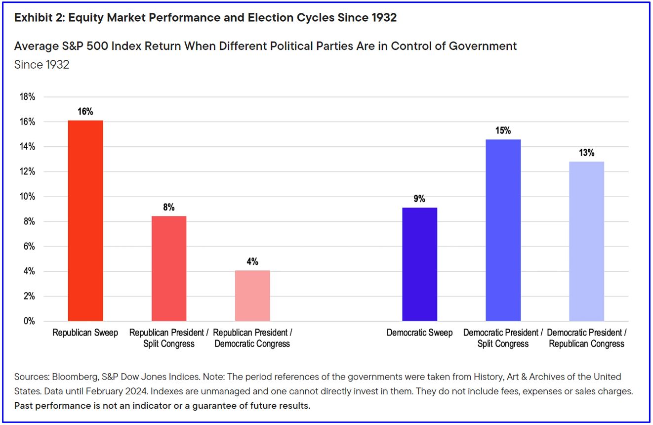 We are not persuaded that performance under past partisan outcomes in Washington (see Exhibit 2 below) will be useful guides for investors today.