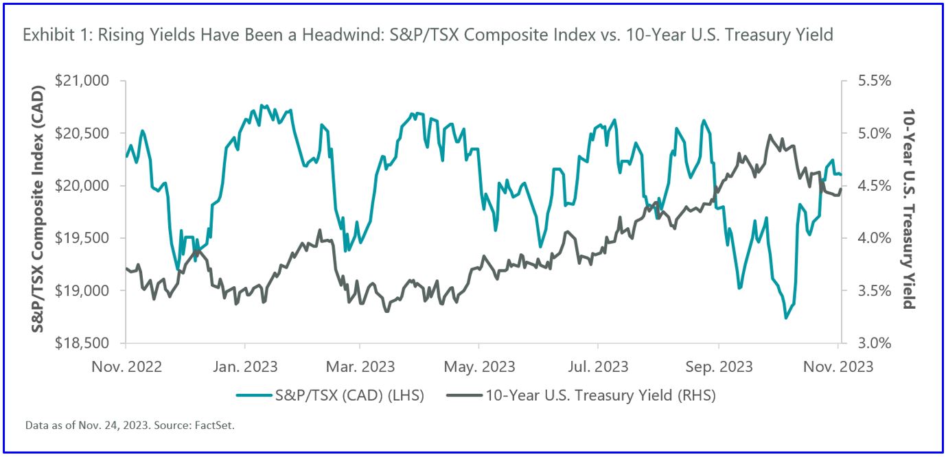 The sharp rise in rates has already been felt among the more defensive areas of the equity market. Among the 11 sectors in the S&P/TSX Composite, communication services, utilities, real estate, materials and financials have suffered losses year to date through October. The first three sectors are among the most interest-rate sensitive in the market and we believe the selling due to rate tightening has been overdone. With valuations down and the economy still fragile, we have become more constructive on these sectors as well midstream/pipelines portion of the energy sector. As inflation abates and growth slows, rates do not need to come down much for these companies to see a re-rating of their stock prices.