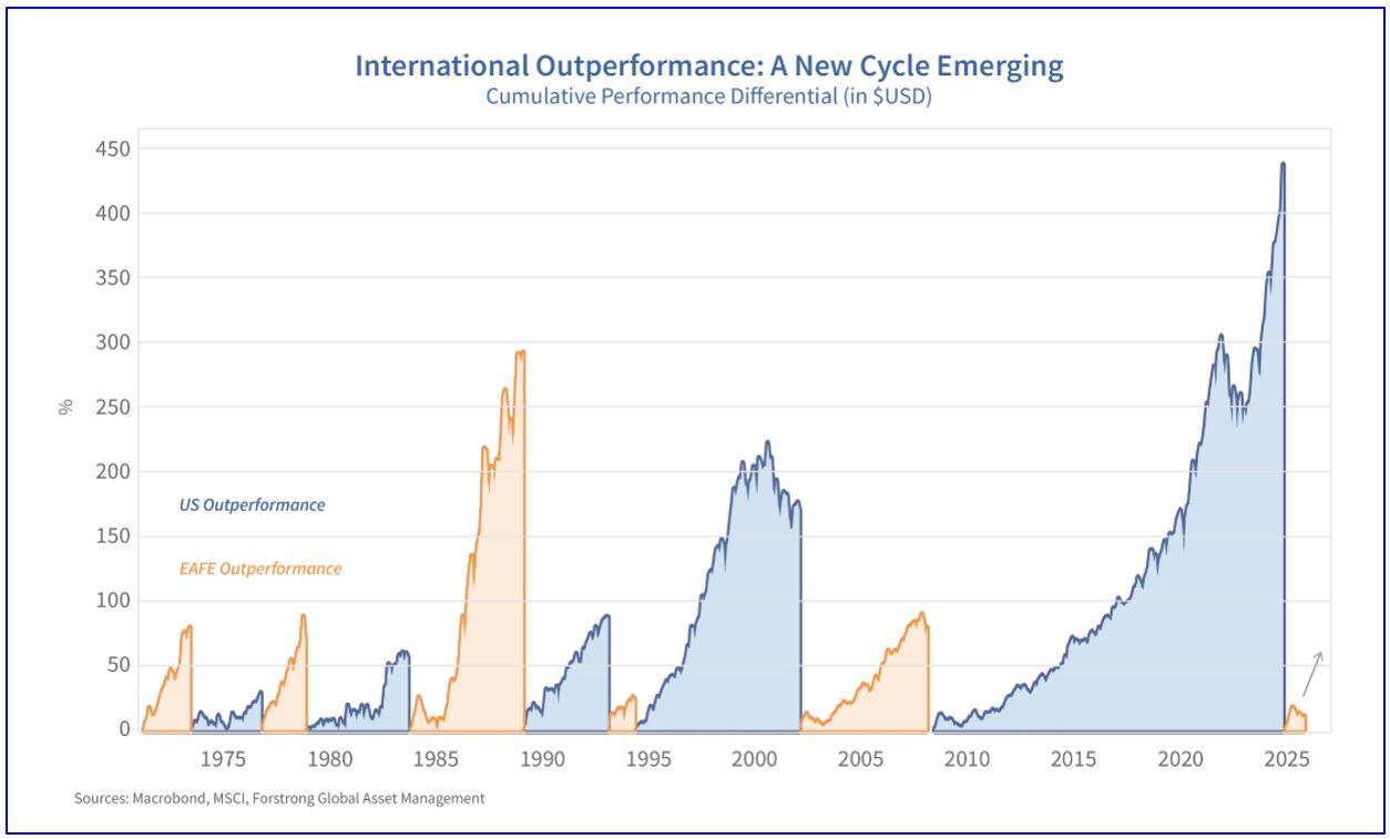 Investors anchored to the past decade’s winners may miss one of the most important turning points of the 2020s. Global diversification is again becoming a return driver – not just a risk management tool.