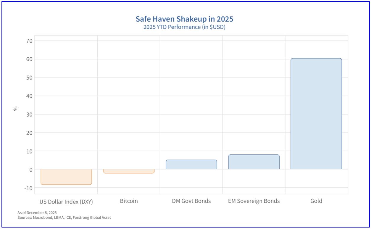 To make sense of macro forces shaping the next cycle, we turn to our 7 Super Trends for 2026 and beyond – the structural themes that define the opportunities and risks ahead for a split-screen world marked by simultaneous strength and fragility, clarity and contradiction. or global investors. In previous posts, we looked at Super Trends 1 & 2, the rise of the rest and fiscal firepower. Last time we continued our outlook for 2026 with Super Trends 3 & 4, AI adopters and the revenge of the real economy. We’ll conclude out Outlook 2026 with Super Trends 5, 6 & 7, the Great Rebalance, currency cold war, and the safe haven shakeup.