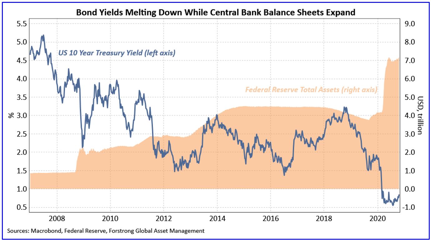 All of which brings us to today. Globally, almost US$12 trillion in monetary and fiscal support has been pumped into the economy to fight the impact of Covid-19, leading to soaring budget deficits and public sector debt in all major economies. Have governments done too much? Apparently not. The world has been stuck with inflation stubbornly below official targets, and bond yields at new lows.