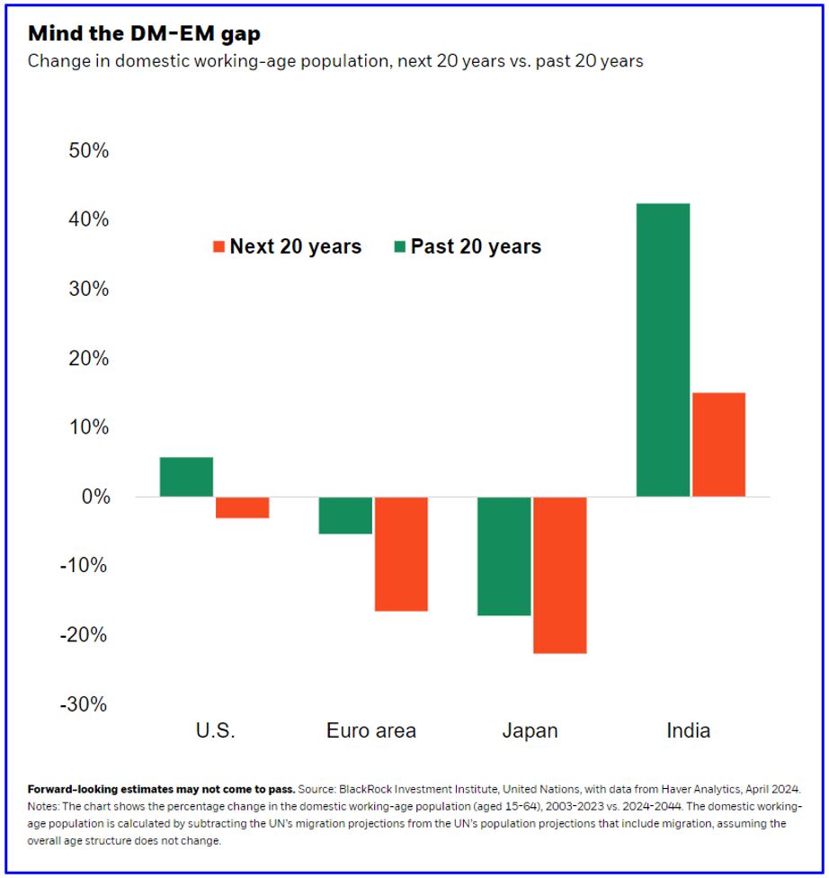 Life expectancy is rising and birth rates are falling across the globe. In many developed markets (DMs), that means the working-age population is set to shrink over the next 20 years. See the chart. That has vast macro implications.