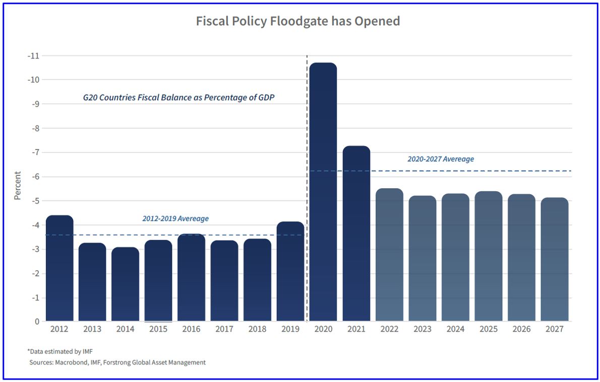 Looking ahead, even with the end of pandemic stimulus, broad enthusiasm around the world for more deficit spending still exists. The rolling crises of the last two decades have shaken the public’s trust in established ways of thinking. An enormous appetite now exists for new solutions to the issues facing modern economies.