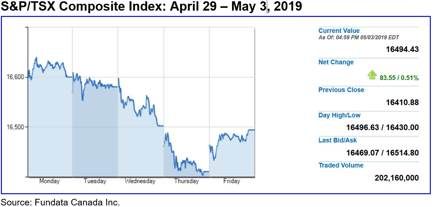The main North American stock market gauges rallied on Friday as a strong U.S. job creation report for April buoyed market sentiment, and helped lift U.S. markets out of a slump on Thursday to close Friday just a hair above breakeven for the week. In fact, the Nasdaq Composite Index closed at another record high on Friday, boosted by gains in Amazon.com Inc. (NASDAQ: AMZN), following news on Thursday that conglomerate Berkshire Hathaway Inc. (NYSE: BRK.A) has been purchasing shares in the e-commerce company. The blue-chip S&P 500 Composite Index followed suit, with a 0.2% gain on the week. Despite a 0.5% rally on Friday, Toronto’s S&P/TSX Composite Index, lagged on the week, losing 0.7%, as a 1.5% weekly drop in the price of crude oil weighed on the energy sector, and financials remained rangebound following the U.S. Fed Chairman Jerome Powell’s comments on Wednesday that no rate moves in either direction were imminent.