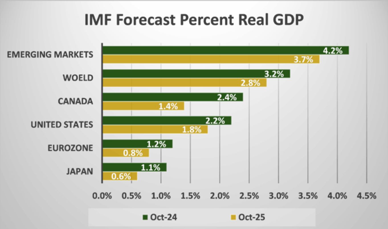Growth projections are declining as the International Monetary Fund (IMF) has issued downward revisions for the U.S., Canada, Europe, Japan, and many emerging markets. According to the White House, trade negotiations involving the U.S., Canada, Europe, and China are moving forward…albeit at a slower pace than expected by the White House.