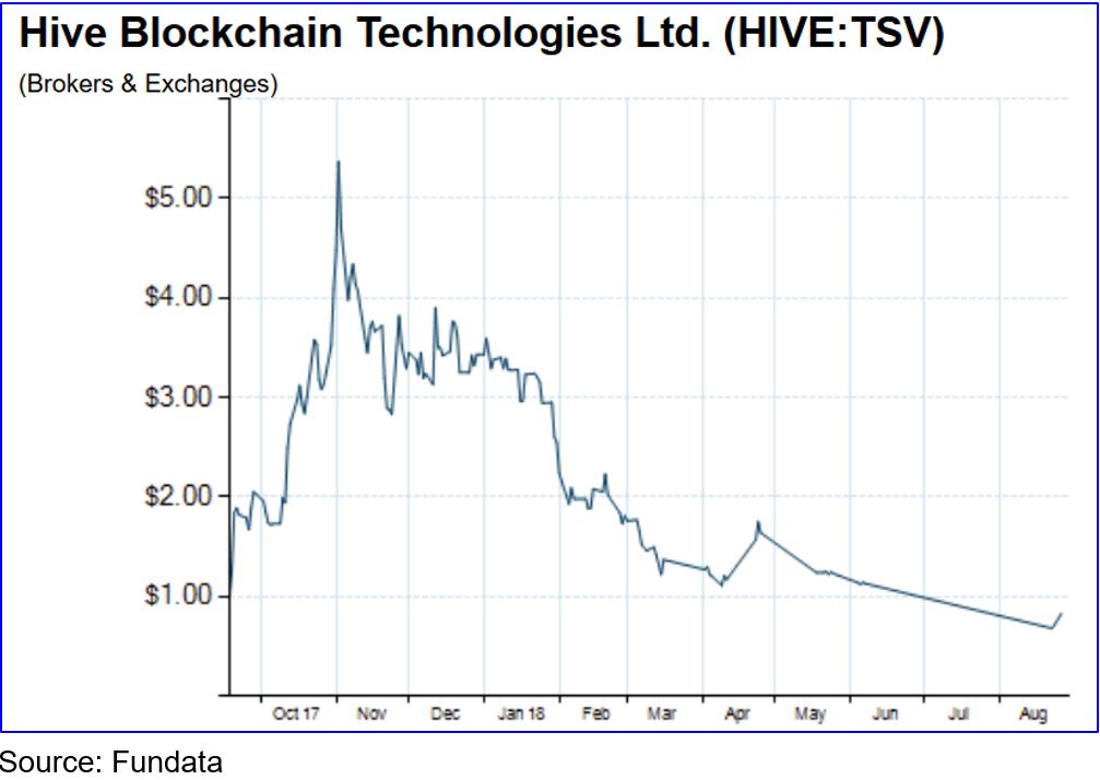 A – I assume you are referring to Hive Blockchain Technologies, which trades on the Toronto Venture Exchange under the symbol HIVE. I have never recommended this security, and a look at its chart shows it has been a very bad investment. It has dropped from a high of $6.75 last November to around $0.80 as of the time of writing.