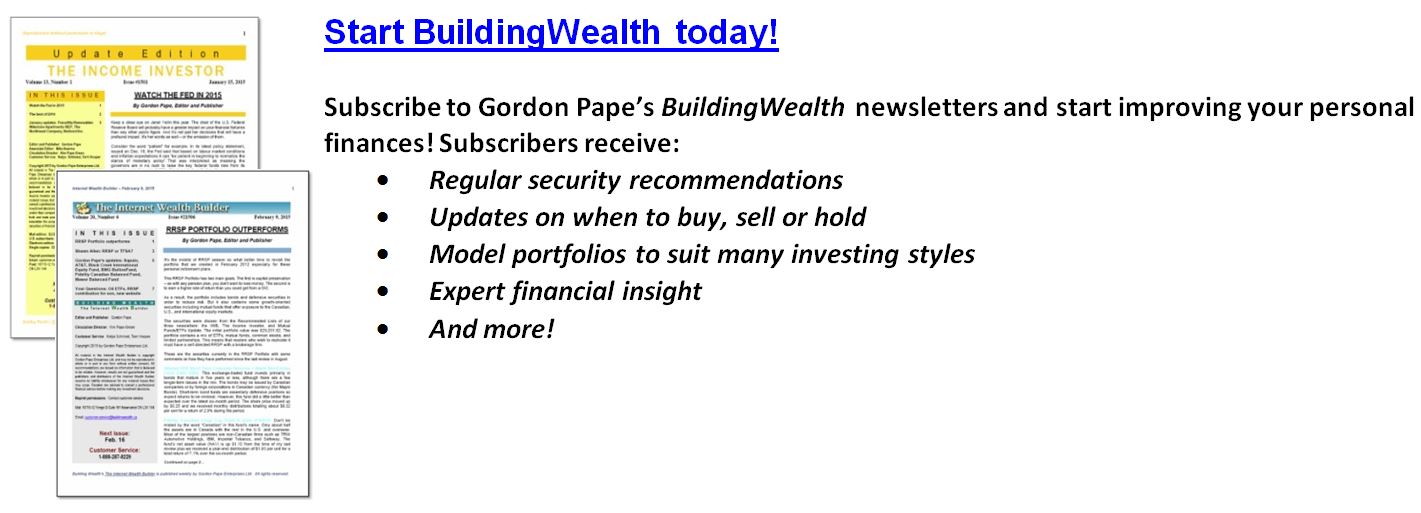 For more information on subscriptions to Gordon Pape’s newsletters, check the Building Wealth website.