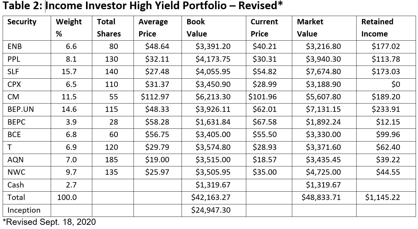 Table 2 shows the revised portfolio. I will review it again in in my Income Investor newsletter next March.