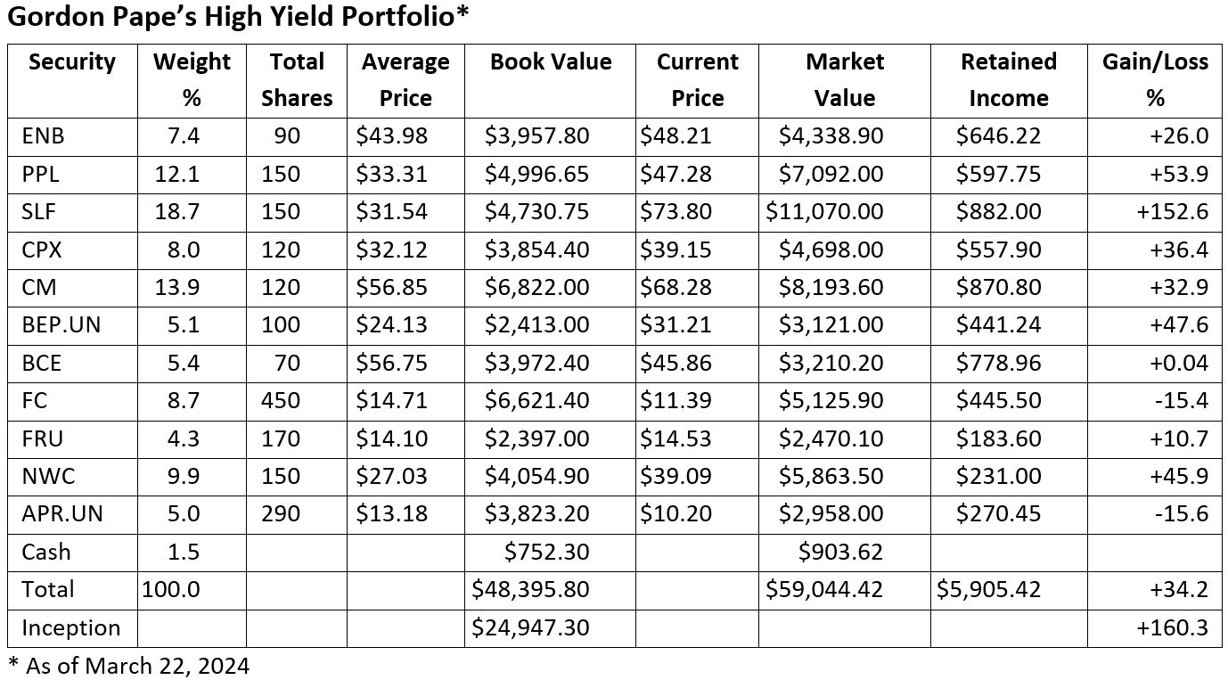 Content © 2024 by Gordon Pape Enterprises. All rights reserved. Reprinted with permission. The foregoing is for general information purposes only and is the opinion of the writer. Securities mentioned carry risk of loss, and no guarantee of performance is made or implied. This information is not intended to provide specific personalized advice including, without limitation, investment, financial, legal, accounting, or tax advice. Always seek advice from your own financial advisor before making investment decisions.