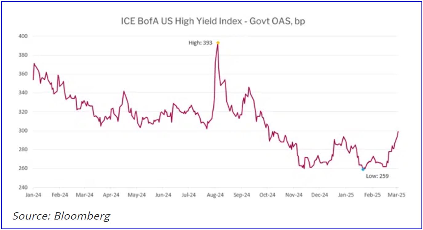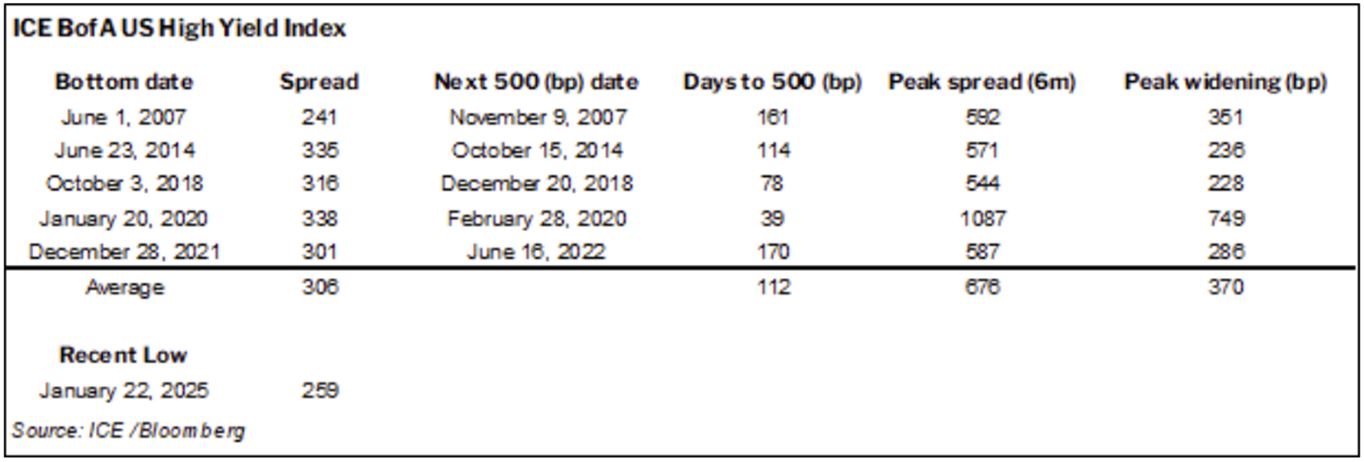In early March with spreads just inside of 300 basis points (bp), we believe that the market is still a long way from being cheap. If Treasury yields stay close to current levels, we would need to see at least a 400 bp high-yield market before becoming constructive. If a spread-widening event coincided with a significant Treasury rally with lower Treasury yields, we would target closer to 500 bp.