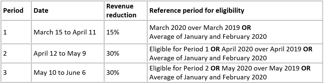 Employers must attest to a drop in revenues of at least 15%in March 2020 and 30% in the months that follow.