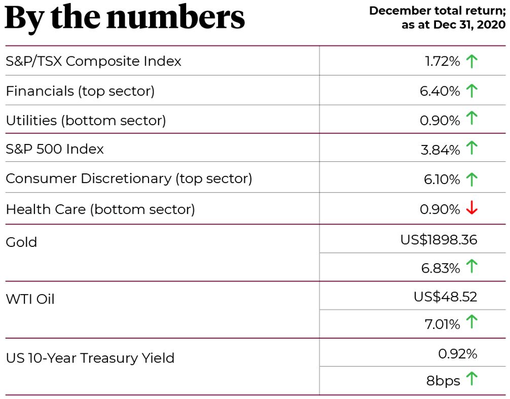 By the numbers displays total returns for the month of October, 2020. The content of this document is for informational purposes only, and is not being provided in the context of an offering of any securities described herein, nor is it a recommendation or solicitation to buy, hold or sell any security. The information is not investment advice, nor is it tailored to the needs or circumstances of any investor. Information contained in this document is not, and under no circumstances is it to be construed as, an offering memorandum, prospectus, advertisement or public offering of securities. No securities commission or similar regulatory authority has reviewed this document and any representation to the contrary is an offence. Information contained in this document is believed to be accurate and reliable, however, we cannot guarantee that it is complete or current at all times. The information provided is subject to change without notice.
