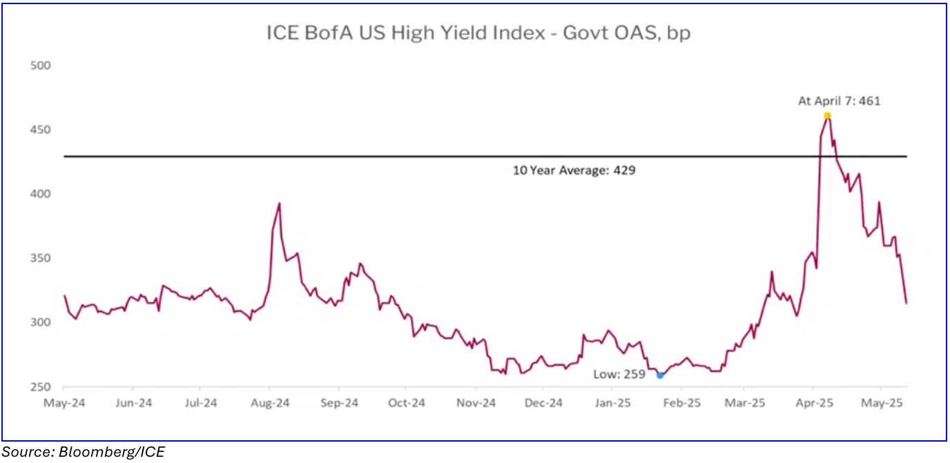 With high yield spreads in the low 300s, any additional spread compression will likely be a slow grind from here. Valuations are now once again at levels that leave the market especially vulnerable to negative shocks. While the market has concluded for now that the increased tariff regime under Trump will not cause significant economic pain, we believe more time is needed to see the impact of the changes, the terms of which are both material and constantly changing.
