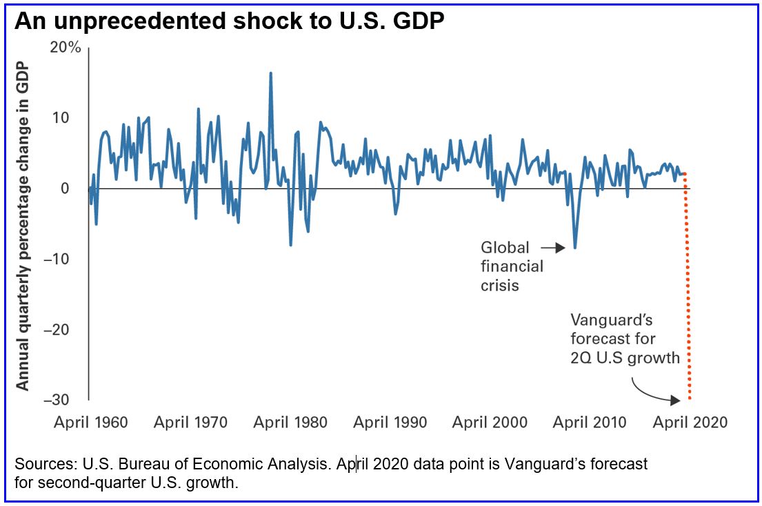 Vanguard has said since the pandemic began that a bold, swift, and efficient policy response is required to limit economic scarring such as bankruptcies, insolvencies, and permanent layoffs. We’ve seen hundreds of policy responses around the globe in the last two months, both monetary (through the purchase of securities to keep markets liquid and functioning) and fiscal (through cash payments to help keep individuals and businesses afloat). In retrospect, policy responses that addressed the global financial crisis may seem like a useful dress rehearsal.