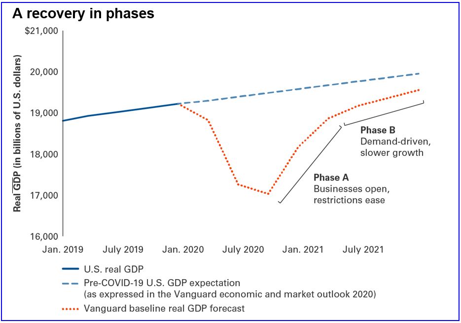 Again, I use the United States in the illustration below to convey the two-stage recovery, but Vanguard expects a similar experience in other developed markets.