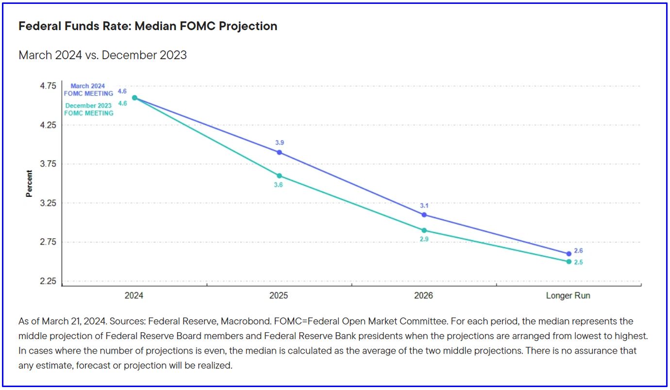 As was widely expected, the Federal Reserve (Fed) decided to leave the fed funds rate unchanged at its March 20 Federal Open Market Committee (FOMC) meeting, with members voting unanimously to maintain the target rate range at 5.25% to 5.50%.