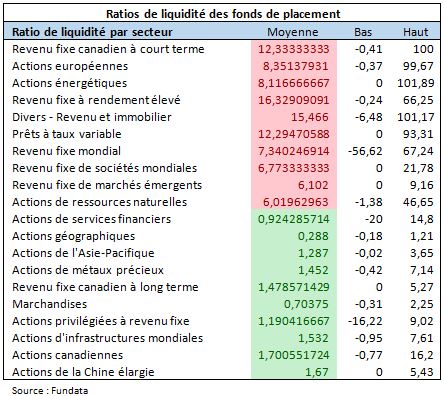 Ratio de liquidité des fonds de placement