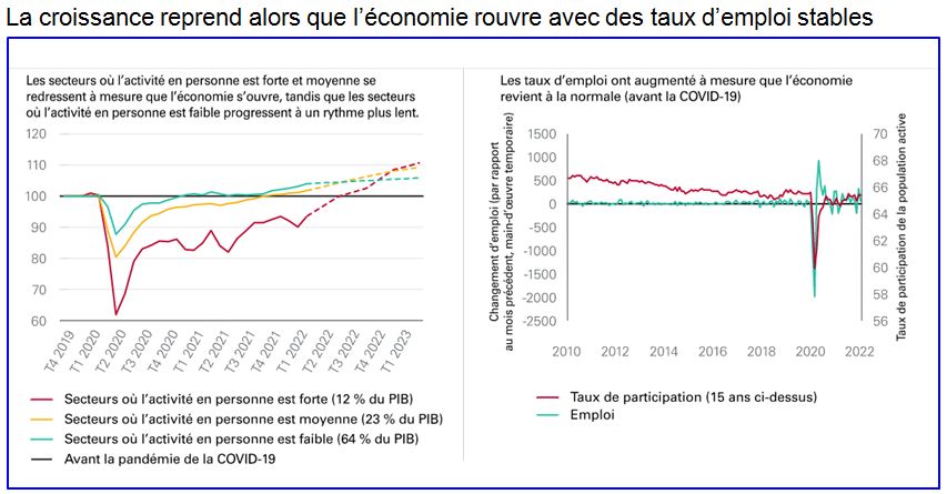 L’économie canadienne a créé 210 000 emplois au premier trimestre de 2022, grâce à la vigueur des secteurs public et privé. Le taux de chômage continue de diminuer, mais le taux de participation au marché du travail stagne. Le taux de chômage est passé de 6,5 % en janvier à 5,5 % en mars, soit le taux de chômage le plus bas depuis le début de la pandémie.