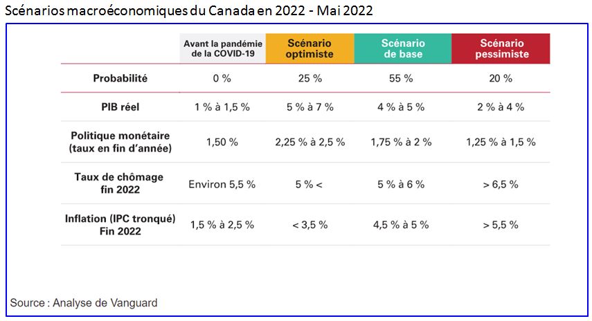 Nos perspectives pour 2021 étaient axées sur l’incidence de la situation sanitaire liée à la COVID-19 sur les conditions économiques et des marchés financiers. La situation sanitaire demeure importante, mais les incidences des politiques macroéconomiques seront cruciales, car les mesures de soutien et de relance mises en place pour lutter contre le ralentissement provoqué par la pandémie seront graduellement éliminées. L’évolution de ces mesures est peut-être le facteur déterminant de nos perspectives économiques et des marchés, mais l’incidence macroéconomique de la guerre en Ukraine augmentera à mesure que les tensions persisteront.