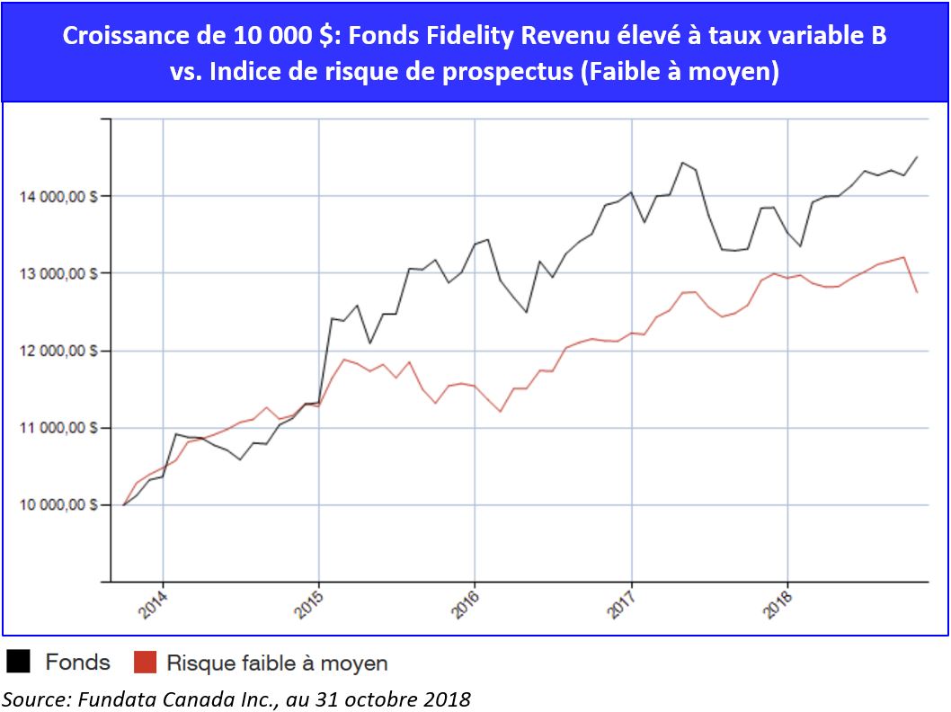 Et que pouvez-vous espérer en termes de rendements? Le Fonds Fidelity Revenu élevé à taux variable affiche un taux de rendement composé annuel moyen sur une période de 5 ans de 7,5 % au 31 octobre 2018 (la moyenne de la catégorie des prêts à taux variable était de 5,5 %) et de 4,8 % pour les 12 derniers mois (la moyenne de la catégorie est de 3,1 %). Ce ne sont pas de mauvais chiffres, vu les alternatives. « C’est une bonne catégorie d’actifs depuis quelques années, caractérisée par une faible volatilité, même par rapport aux marchés de qualité supérieure », explique M. Nielsen.