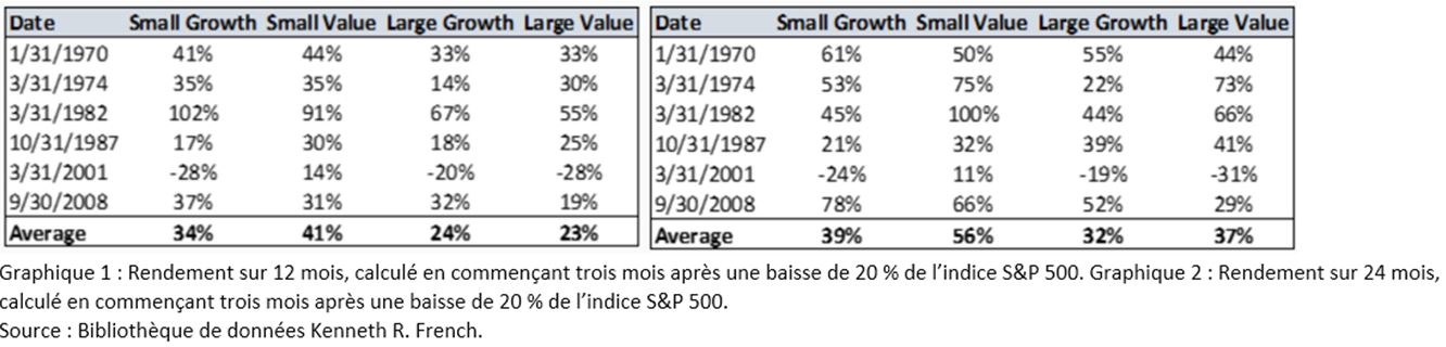 Dans le passé, ce sont les entreprises à petite capitalisation qui mènent les solides rendements pendant une reprise. Nous sommes d’avis que le ressort est enroulé et que la même chose se produira cette fois-ci. En outre, nous pensons qu’il s’agit d’un bon moment pour accroître la pondération en titres à petite capitalisation, en partie parce qu’ils ont été plus durement touchés, mais aussi parce qu’il s’agit d’un univers de placement que nous connaissons bien et dont nous comprenons les leviers de création de valeur.