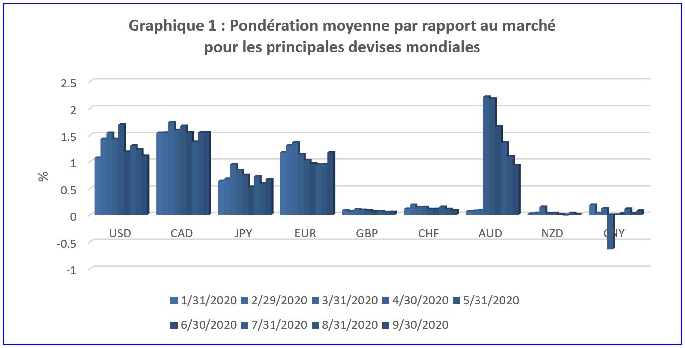 Pondérations moyennes de portefeuille pour les devises mondiales