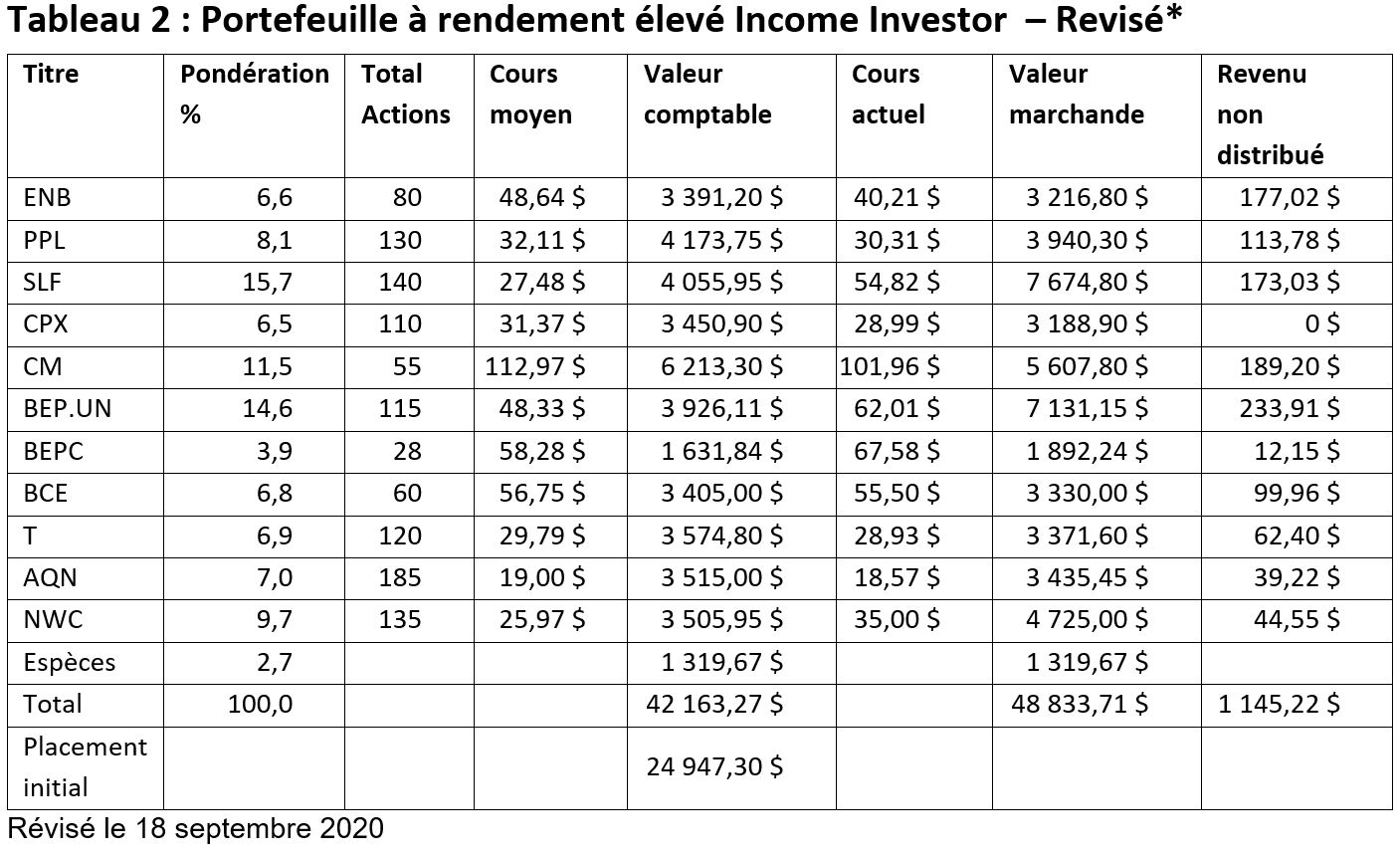 Le tableau 2 présente le portefeuille révisé. Je l’examinerai à nouveau dans mon bulletin Income Investor en mars prochain.