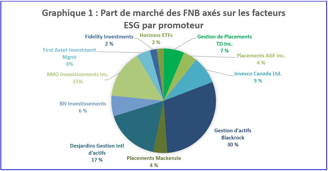 L'augmentation des milléniaux au sein de la main-d'œuvre professionnelle va continuer à s'accélérer dans les années à venir et constitue une force profonde dans l'évolution des tendances d'investissement. Avec un appétit croissant pour l'investissement responsable, il est presque acquis que ce grand groupe recherchera une variété de véhicules d'investissement mettant l'accent sur les facteurs environnementaux, sociaux et de gouvernance (ESG). Le graphique 1 illustre la part de marché actuelle des FNB investissant en tenant compte des facteurs ESG, soit 47 FNB.