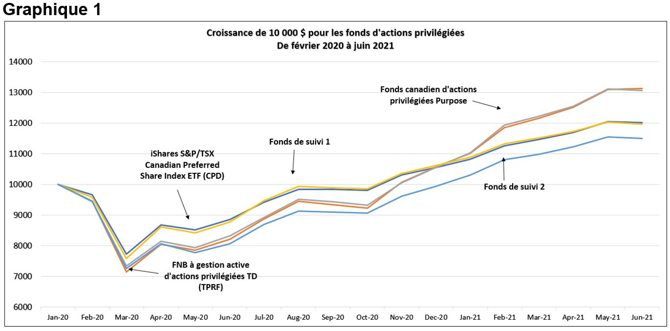 Le graphique 1 montre comment les cinq fonds ont fait fructifier un investissement de 10 000 $ depuis le début de février 2020.
