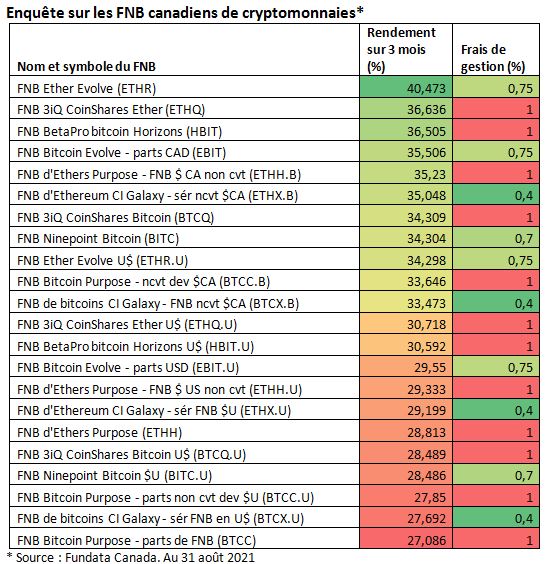 La première chose qui attire les investisseurs lorsqu’ils sélectionnent leurs FNB semble être le coût ou les frais de gestion. Mais lorsque j’ai récemment parlé à Elliot Johnson, chef des placements et chef de l'exploitation chez Evolve ETFs, il a déclaré que les investisseurs ne devraient pas se concentrer uniquement sur le coût lorsqu'ils sélectionnent des FNB de cryptomonnaies pour leurs portefeuilles. « Lorsque vous investissez dans le Bitcoin, vous investissez essentiellement dans une classe d'actifs à 80 % de volatilité », a-t-il déclaré. Il estime qu'à ce niveau de volatilité, un fonds doit minimiser l'erreur de suivi pour maintenir une fourchette de frais équilibrée. « Ce type d'investissement nécessite un déploiement à 100 % dans l'actif sans affecter l'exposition lorsque d'autres détenteurs de parts achètent ou vendent des parts du fonds », a-t-il ajouté.
