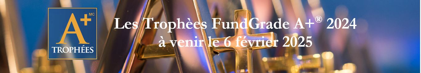 Les Trophées annuels FundGrade A+, organisés par Fundata Canada, récompensent l’excellence dans le secteur des fonds d’investissement au Canada tout au long de l’année. Ces prix sont attribués sur la base de critères strictement objectifs, en tenant compte des rendements ajustés au risque sur des périodes de 2 à 10 ans. Chaque mois, les fonds reçoivent une note, et ceux qui maintiennent une note élevée de façon constante tout au long de l’année obtiennent la prestigieuse distinction A+.