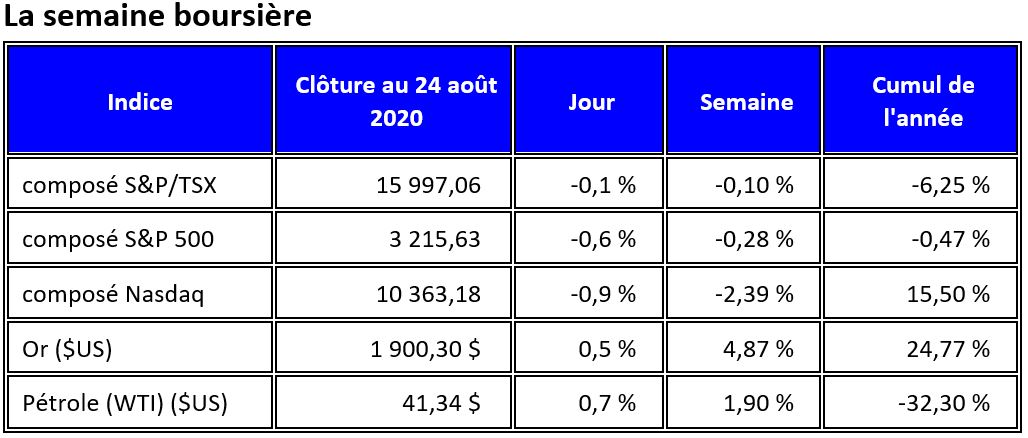 Les principaux indices boursiers nord-américains ont reculé au cours de la semaine, les cas de COVID-19 ayant fait un bond aux États-Unis et les investisseurs ayant liquidé des titres technologiques de haut vol. En outre, les tensions entre les États-Unis et la Chine se sont aggravées, après que les États-Unis aient exigé mercredi que la Chine ferme son consulat à Houston, au Texas, en raison d'allégations de vol de propriété intellectuelle. La Chine a riposté en ordonnant la fermeture du consulat américain dans la ville de Chengdu, en Chine occidentale.