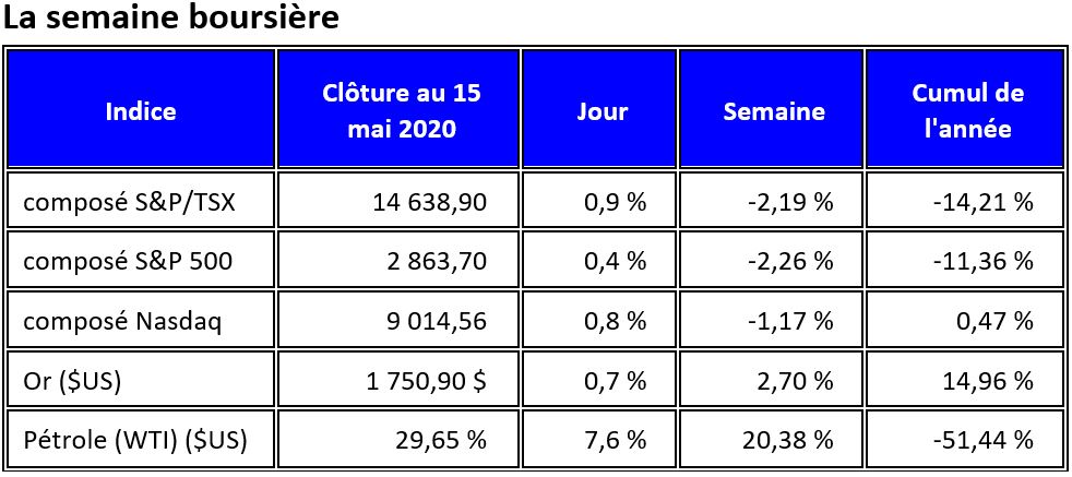 Une chute plus importante que prévu des ventes au détail aux États-Unis a pesé lourd sur les grands indices boursiers nord-américains la semaine passée. Le département du Commerce américain a reporté un déclin de 16,4 %, bien plus important que l'estimation du consensus qui prévoyait une baisse de 12,5 %, la plupart des magasins ayant été forcés de fermer au cours du mois à cause la pandémie de la Covid-19. Un rapport du Conseil de la Réserve fédérale a également joué un rôle dans la baisse du sentiment général, indiquant une baisse de 11,2 % en avril de la production industrielle, soit le plus large déclin en 101 années de disponibilité de ces données.