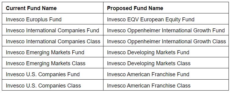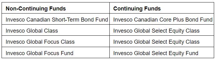 Invesco proposes to merge the following Non-Continuing Funds into the respective Continuing Funds, effective on or about close of business Aug. 11, 2023: