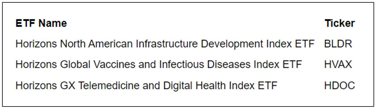 Horizons ETFs Management (Canada) on May 26 announced that it will terminate three exchange traded funds effective at the close of business on or about Aug. 8, 2023: