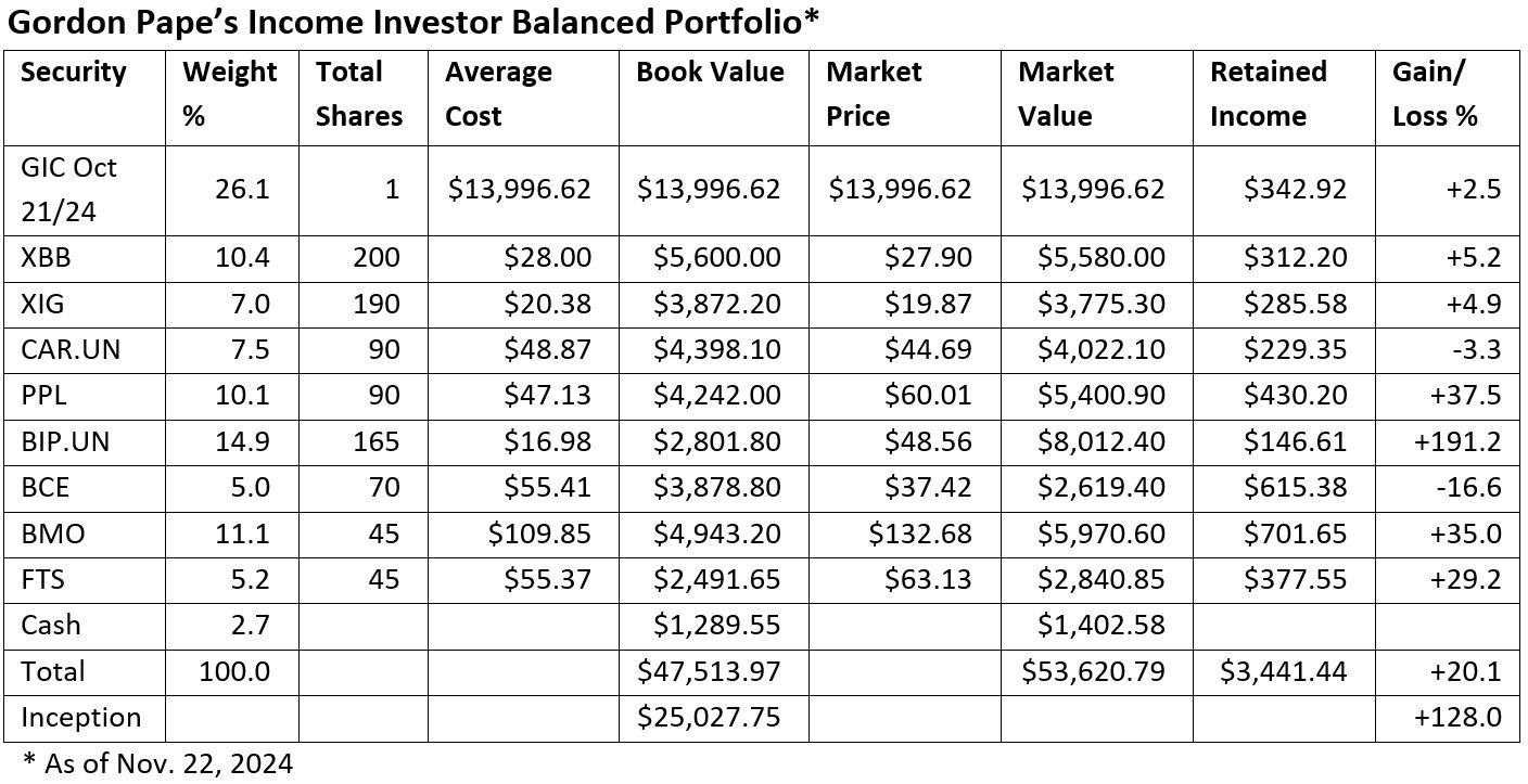 Content © 2024 by Gordon Pape Enterprises. All rights reserved. Reprinted with permission. The foregoing is for general information purposes only and is the opinion of the writer. Securities mentioned carry risk of loss, and no guarantee of performance is made or implied. This information is not intended to provide specific personalized advice including, without limitation, investment, financial, legal, accounting, or tax advice. Always seek advice from your own financial advisor before making investment decisions.