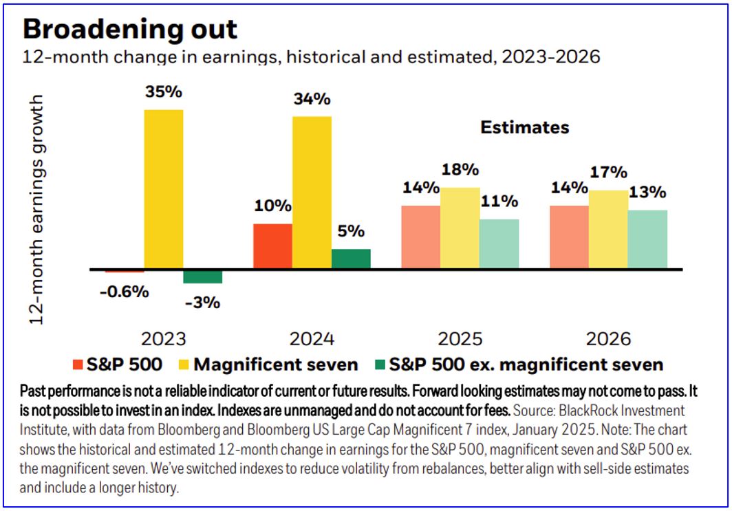 Looking ahead, we’re tracking how U.S. policy could affect different sectors and potentially cause earnings strength to broaden further. The financial sector could get a boost from expected deregulation if it spurs more corporate dealmaking.