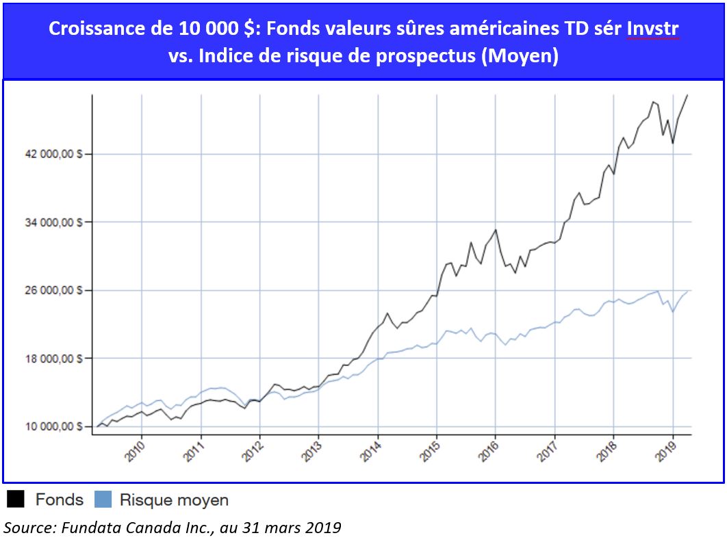 Les actions de croissance demeurant les favoris du marché, il n’est pas surprenant de voir que le Fonds de valeurs sûres américaines TD génère des rendements supérieurs à la moyenne. Pour le premier trimestre de 2019, ce fonds axé sur la croissance a gagné 13,2 %, dépassant ainsi de loin le S&P 500, en hausse de 11,3 %. Les chiffres à plus long terme sont encore plus impressionnants, avec un taux de rendement annuel moyen sur 5 ans de 17,1 % au 31 mars, contre 15,2 % pour l'indice. Sa performance exceptionnelle et constante lui a valu de nombreux Trophées FundGrade A+®, plus récemment en 2018.